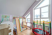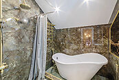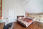 В доме, несмотря на не очень большую площадь разместилось четыре спальни. На втором этаже располагаются три из них: мастер спальня со своей гардеробной и две изолированные комнаты, просторный санузел второго этажа располагает душевой и отдельно стоящей ванной для максимального комфорта.
