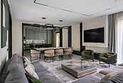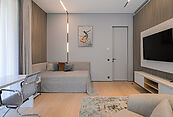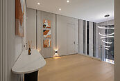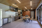 Первый этаж - прихожая, гардеробная, гостевой с/у, лестничный холл, гостиная-столовая, кухня с кладовой, зона барбекю, терраса, гостевая спальня с ванной.