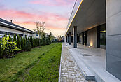 Первый этаж - комната персонала с санузлом, техническая кухня с отдельным входом, гостиная, прачечная, котельная, гараж на два автомобиля, кладовая, гардеробная, серверная, спортивный зал, спальня, спа-зона (санузел, сауна), терраса