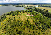 Участок площадью 60 соток прямоугольной формы (примерно 30 м х 200 м) хорошо освещен и подготовлен к проведению ландшафтных работ. С юго-восточной стороны часть участка занимает смешанный лес: реликтовые сосны, ели и березы. С противоположной стороны открывается прекрасный вид на воду. Можно поставить свой причал.