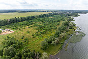 Участок площадью 56 соток правильной формы (примерно 47 м х 120 м) хорошо освещен и подготовлен к проведению ландшафтных работ. С юго-восточной стороны часть участка занимает смешанный лес: реликтовые сосны, ели и березы. С противоположной стороны открывается прекрасный вид на воду. Можно поставить свой причал.