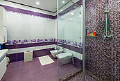 Современная архитектурная концепция. Фасад облицова натуральным камнем и деревом. Большие панорамные окна ориентированы на три стороны. Во внутренней отделке - исключительно премиальные материалы, дорогая мебель, встроенная бытовая техника, сантехника.