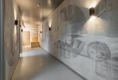Первый этаж: кухня персонала, три спальни и зона отдыха, комната охраны, автомойка, лифт для автомобилей на подземный паркинг.
