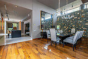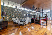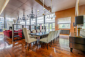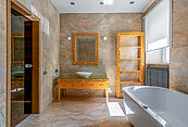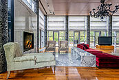 Первый этаж: холл, гардеробная, гостиная с выходом на террасу, столовая, кухня, санузел, домашний кинотеатр, кабинет, бильярдная с баром; блок: две спальни с санузлами; зона СПА: бассейн 18м, парная, санузел, спортзал; полностью оборудованная прачечная, терраса с зоной барбекю;