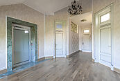 Первый этаж: холл, гардеробная, спальня с санузлом с ванной, гостиная с камином, кабинет, кухня-столовая с выходом на террасу, гостиная с балконом, вторая кухня-мангальная с выходом на веранду, санузел с душевой, лифт