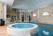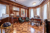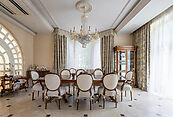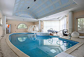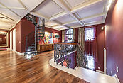 Первый этаж: холл, гостиная с камином, кабинет, столовая, кухня, гостевой санузел, бассейн, сауна, джакузи;