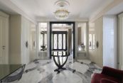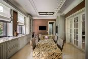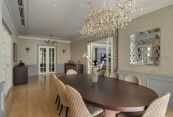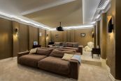 Цокольный этаж: домашний кинотеатр, огромная гардеробная, постирочная, ванная комната, комнаты для бытовых нужд, бойлерная, оружейная, тех.помещения вентиляции и бассейна, проход к СПА-комплексу;
