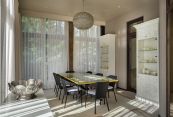 Первый этаж: прихожая, гардеробная, большой холл, гостиная с камином и выход на закрытую летнюю террасу, столовая и кухня с выходом на открытую террасу, кладовая, гостевой санузел, кабинет, два гаража на 6 машиномест, блок для обслуживающего персонала;