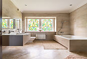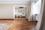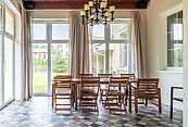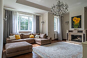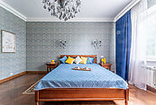 Первый этаж: кухня, гостиная-столовая с камином, кабинет (гостевая спальня), тарасса с барбекю, постирочная, сауна, гараж, санузел, блок для персонала;