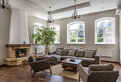 Первый этаж: холл, кабинет с эркером (можно использовать под спальню), кухня-столовая, гостиная с дровяным камином с выходом к кухонной зоне и открытому патио, санузел, гараж на два а/м, котельная;