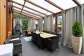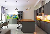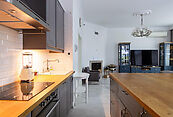 Первый этаж: прихожая, кухня-столовая с дровяным камином и выходом на террасу, гостевой санузел;