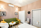 продуктовый супермаркет Перекресток; аптека; салон красоты; алкогольный бутик; лавка с фермерскими продуктами; несколько ресторанов (Vasilchuki Chaihona № 1, OMG cafe); отделения банка Сбербанк и Сбер Первый; фитнес клуб World Сlass; клиника; детский мир; оомагазин.