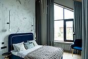 Архитектурный шедевр, в котором хочется жить. Фасад дома, одетый в уникальную кладку из трех оттенков кирпича Faber-Jar, играет объемом и глубиной, создавая неповторимый образ английского стиля. Его визитная карточка — грандиозный витраж и панорамное остекление, которое стирает границу между изысканным интерьером и природой вашего сада.