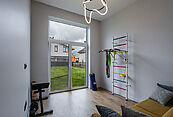 Большие панорамные окна и высокие потолки обеспечивают естественное освещение на протяжении всего дня, создавая атмосферу тепла и уюта даже в пасмурную погоду. Этот дом идеально подойдет для тех, кто ищет современный и функциональный вариант загородного жилья с комфортной близостью к столице и развитой инфраструктурой.