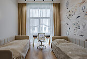 Планировка продумана для максимального удобства: просторная гостиная-столовая, стильная кухня, оснащенная современной бытовой техникой, четыре уютные спальни, включая мастер-спальню с индивидуальной гардеробной зоной.