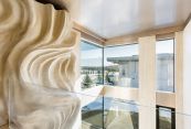В доме выполнен дизайнерский ремонт. Панорамное остекление наполняет внутреннее пространство естественным светом и ощущением единства с природой. Интерьер выполнен в современном стиле, в светлых, мягких пастельных тонах.