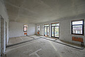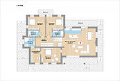 Второй этаж: кухня-гостиная с выходом на балкон, холл, мастер-спальня с ванной и гардеробной, 2 комнаты с ванными и выходами на общий балкон.