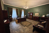 Монолитный трёхэтажный дом построен в 2007 году. Архитектура и оформление интерьера выполнено в романтичном замковом стиле. Внутреннее пространство — это воплощение роскоши с использованием мрамора, гранита, дуба и итальянского керамогранита, дополненное элементами ручной ковки, авторскими предметами интерьера и предметами искусства. Объект полностью укомплектован мебелью и техникой, которые остаются новому владельцу. Технологическая оснащенность дома включает в себя: теплые полы во всех помещениях, приточно-вытяжную систему вентиляции, систему водоподготовки, камин с принудительным выводом дыма и охранную систему.