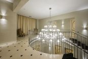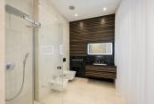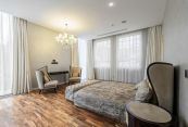 Продуманная и удобная планировка. На первом этаже - просторная светлая гостиная с отдельной каминной зоной, большая функциональная кухня с островом, оснащенная швейцарской техникой V-Zug. Входной холл с великолепной парадной лестницей и акцентной люстрой с кристаллами Swarovski от итальянского ателье Beby Group. Бассейн 10 м с противотоком на премиальном оборудовании Olуmpic с панорамным остеклением и живописным видом на лес, помещение для установки сауны или хаммама. На втором этаже 4 просторные спальни с ванными комнатами и гардеробными и выходом на веранду с видом на лес. Ванные комнаты оборудованы мебелью и сантехникой от итальянской фабрики Milldue и немецкого производителя Burgbad. В цоколе - джакузи и комната отдыха площадью 87 кв.м с барной стойкой, выполнена подготовка для домашнего кинотеатра, тех. помещение бассейна, тренажерный зал, постирочная и кладовая.