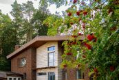 Особенности дома: интересная планировка, высокие потолки (3,3 м - на 1 этаже, 5,5 м - на втором), лесной участок - утопает в зелени, живописный вид из панорамных окон на вековые сосны, рябины, дубы.