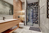 В отделке использованы элитные, натуральные материалы. Всё укомплектовано современным оборудованием и мебелью по авторским эскизам.