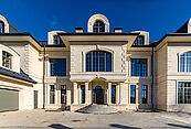 Первый этаж: гостиная, столовая, кухня, кинотеатр, летняя кухня, кабинет, гардеробная, холл, коридор, санузел, постирочная, спортивная комната, массажная комната, хаммам, техническое помещение, топочная, санузел, душевая, парная, лестничный холл, гараж, терраса с бассейном