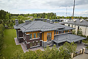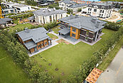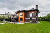 Дом 520 кв.м. выполнен в современном стиле Райт, построен в 2023 году из кирпича на монолитном фундаменте и с монолитными перекрытиями, фасад здания облицован каменным клинкером и деревянной доской, сделана входная группа с широкой лестницей и навесом под автомобиль, крыша - композитная черепица. В данный момент идут чистовые отделочные работы внутри дома.