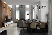 Планировка дома включает в себя просторный зал с обеденной зоной, четыре комфортные спальни и зону отдыха, обеспечивая достаточное место для всей семьи и гостей. Высокие потолки, достигающие 3,5 метров, и большие окна придают комнатам ощущение простора и воздушности.