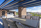 Третий этаж: подсобное помещение, выход на эксплуатируемую кровлю с зоной отдыха и барбекю.