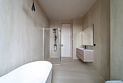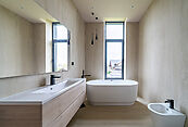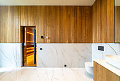 Приватная зона: мастер-блок 81 кв. м (спальня, две гардеробных 18 кв. м и 14 кв. м, санузел), три детских блока площадью 44, 55 и 56 кв. м (четкое зонирование, выделяющее кабинет-игровую-гардеробную, детскую и полноценный санузел с окном, ванной, душевой, умывальником, унитазом и биде), прачечная.
