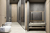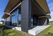 Первый этаж: просторная входная зона с холлом, гостиная с камином, кухня столовая, терраса для отдыха на свежем воздухе, три основные спальни, гостевая комната, постирочная, вместительная гардеробная, котельная, подсобное помещение.