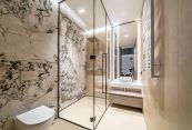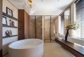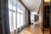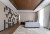 Второй этаж: мастер-спальня со своей гардеробной и ванной комнатами, две спальни, каждая со своим санузлом, гардеробная, спальня с гардеробной и ванной комнатами, терраса, блок для персонала.