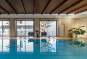 Первый этаж: холл, гостиная со вторым светом, столовая, кухня, кладовая, две гардеробные, три санузла, спальня с ванной комнатой, постирочная, кабинет, бассейн, хаммам, купель, сауна, терраса, котельная, гараж на два автомобиля;