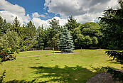 На просторном и приватном участке площадью 30 соток сделаны ландшафтный дизайн, освещение, дренаж и автополив, установлена зона барбекю.