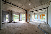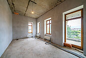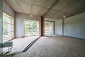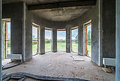 Дом построен в классическом стиле. Фасад дома без отделки, внутри проведены работы по выравниванию стен, электричество разведено по всему дому, включая цоколь. Дом отапливается. Организован подогрев террас. Фундамент – монолитная плита, стены кирпичные, лестница монолитная. Возможно установить лифт. Цоколь сухой, по периметру дома проведены работы по водоотведению воды от дома в ливневую канализацию поселка. Есть проектная и рабочая документации по внутренним строительным работам. Дома с обеих сторон заселены, строительные работы не ведутся.