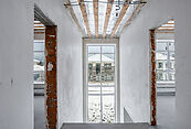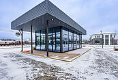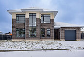 Дом с просторной террасой построен из теплых керамических Parotherm, облицован клинкерным кирпичом. Пристроенный гараж опционально может быть оснащен автоматическими воротами при покупке и имеет отдельных вход, чтобы выхлопные газы не попадали в дом. Есть возможность установки дровяного камина.