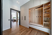Первый этаж: прихожая с гардеробной, гостиная, кухня-столовая, кабинет, санузел, постирочная, котельная;
