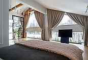 Внутренняя отделка выполнена в 2024г. Планировка позволяет полностью скрыть частную жизнь от соседей: все жилые зоны и терраса ориентированы на лес. Высокие потолки создают объем, интерьер укомплектован мебелью и техникой ведущих мировых брендов.