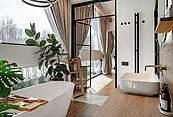 Архитектура в стиле минимализма с четкими линиями и обилием стекла подчеркивает статус владельца, ценящего воздух и свет. Это пространство для тех, кто ищет баланса между технологичным комфортом и возможностью замедлиться, не покидая пределов своего владения.