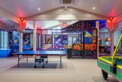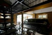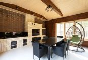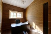 Первый этаж: кухня-гостиная, санузел, кабинет, спальня, кладовая, гараж, блок для персонала, котельная.