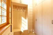 Первый этаж: прихожая, две гардеробных, кухня, столовая, гостиная, спальня, гостевой санузел, постирочная.