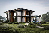 Поселок рассчитан на 52 домовладения. Площадь домов варьируется от 317 до 379 м2.