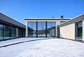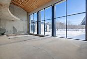 Первый этаж - холл, гостиная-столовая со вторым светом и выходом на террасу, кухня, мастер-блок (спальня, кабинет, ванная комната, гардеробная), гостевой санузел, кладовая, постирочная, СПА-зона (сауна, хамам, комната отдыха, санузел с душевой), тренажерный зал/игровая, гараж на 2 машины, котельная, кладовая, квартира для персонала с отдельным входом (кухня, спальня, санузел).