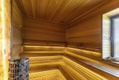 Первый этаж: холл, гардеробная, кухня-столовая-гостиная с биокамином и выходом на крытую летнюю террасу, спальня, ванная комната, сауна, котельная, постирочная, отапливаемый гараж на два автомобиля.