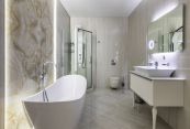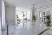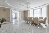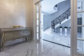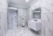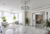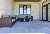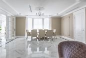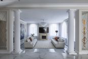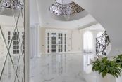 Особняк отличает премиальное качество строительства. Фасады облицованы дагестанским белоснежным песчаником, который своим качеством и составом не уступает граниту. Несущие стены выполнены из керамических блоков – безопасного для здоровья и натурального материала, который отлично удерживает тепло. На крыше уложена натуральная черепица.