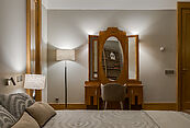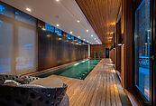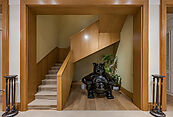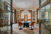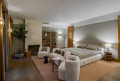 Продуманная планировка отвечает требованиям комфорта и функциональности. Просторная гостиная с камином и выходом на террасу, объединенная с кухней-столовой, создает идеальное пространство для теплых разговоров в кругу семьи. На втором этаже расположены главная спальня с камином, гардеробной и террасой, а также уютная библиотека, детская гостиная и две детские спальни. SPA-зона включает бассейн с выходом на террасу, сауну, хамам и каминный зал. Для гостей предусмотрены две отдельные спальни с санузлами. В цоколе размещены помещения для персонала, постирочная, фитнес-зона, гардеробная и технические комнаты.