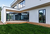 Прочность и долговечность здания обеспечены его конструктивом. Построен из газобетонных блоков, известные своей энергоэффективностью, на надежном фундаменте - плита. Внутри сделаны монолитные перекрытия. Завершает образ дома эксплуатируемая кровля, предлагающая дополнительное пространство для отдыха на свежем воздухе.