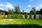 Дом построен на ухоженном участке площадью 8 соток, где уже выстелен газон, сделана эффективная дренажная система по периметру дома, высажены туи. А для отдыха в теплые дни к дому пристроена открытая терраса, покрытая долговечной лиственницей. Для автомобилей сделан навес на два машиноместа.