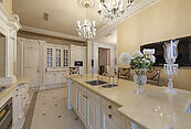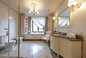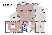 Цокольный этаж: холл, винная комната, комната отдыха с TV-зоной, душевая, хамам, санузел, котельная, щитовая, постирочно-гладильная, две кладовые комнаты, чемоданная комната, блок для персонала (гостиная-спальня, кухня, санузел с душевой);