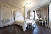 Второй этаж: холл, кабинет-библиотека, большой мастер-блок (гостиная, большая спальня с дровяным камином, выходом на балкон, гардеробной с “островом”, санузлом с ванной и душевой), спальня с выходом на балкон и своей гардеробной, санузлом и ванной, спальня с гардеробной, санузлом, душевой и ванной.